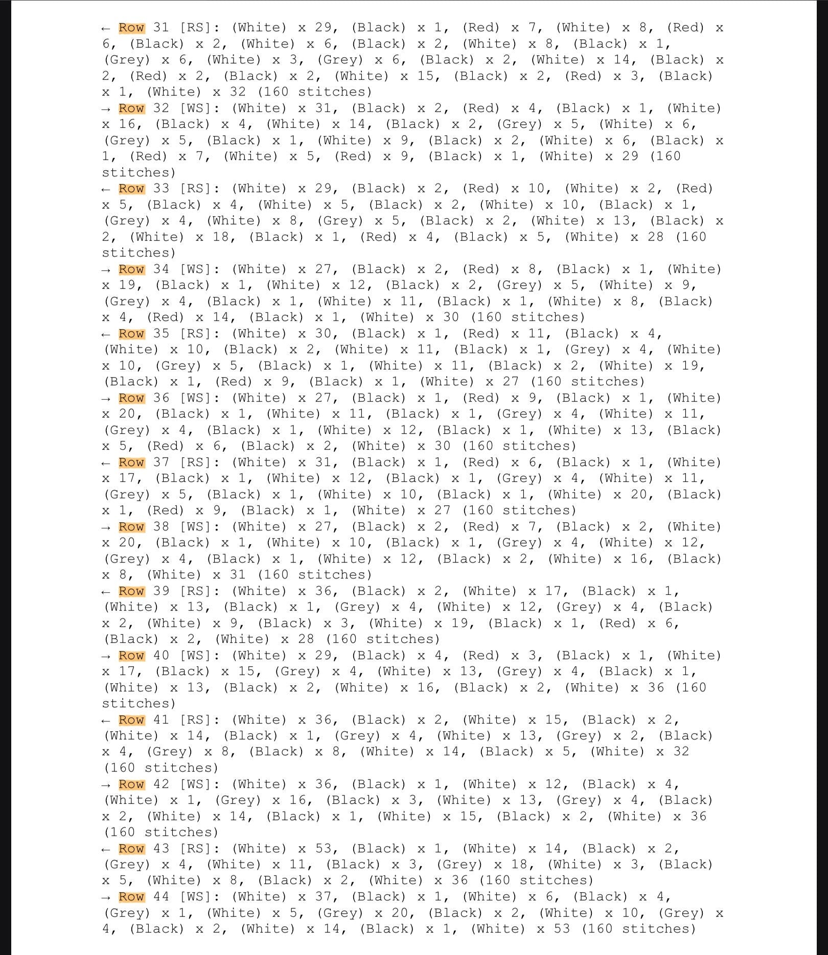 The measurements for the blanket are are 160 stitches across by 180 rows, approximately throw blanket.