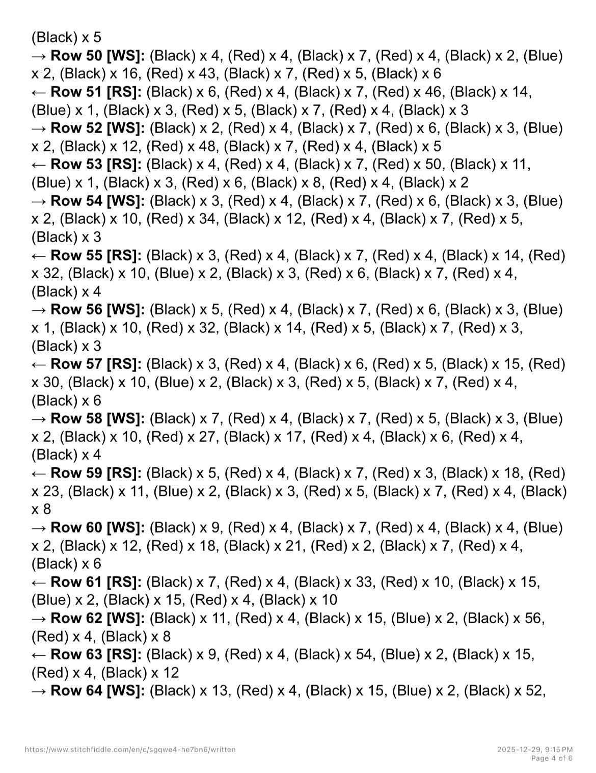 The pattern is 100 stitches across by 110 rows.